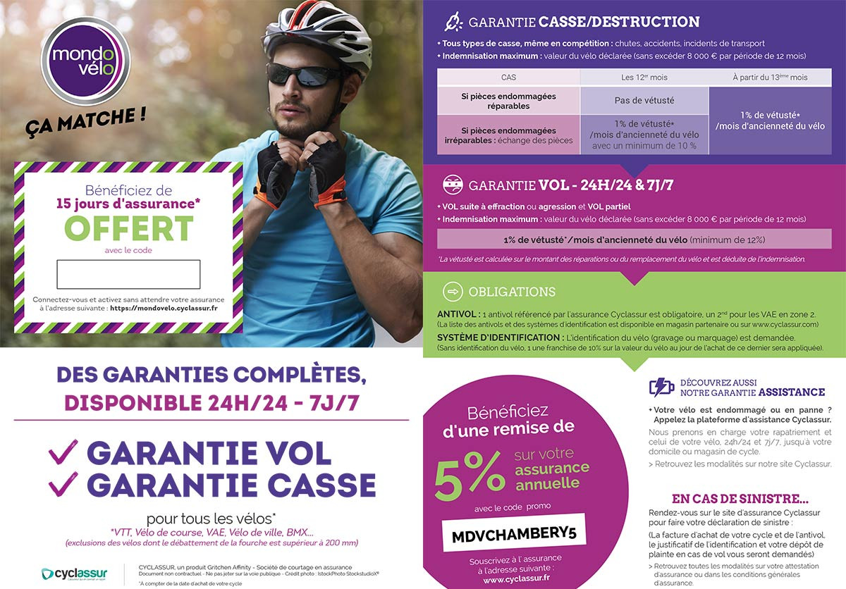 Prix de votre vélo Montant à assurer, accessoires fixes compris.Indemnisation sur présentation d’une facture acquittée à votre nomVoir les cga pour plus d'informations :